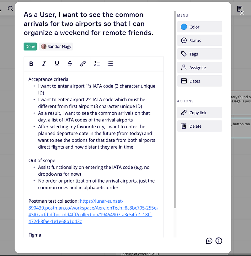 I showed Miro for this post, however not long after I made my first user stories in Miro, I moved to my usual tool of Jira and Confluence, but you can use any tools you already familiar with, does not really matter which tools to use on this level, Trello, Linear, even sometimes Excel can be enough or a Google Sheet, just keep on improving on the process and use the best tool available for the purpose.
