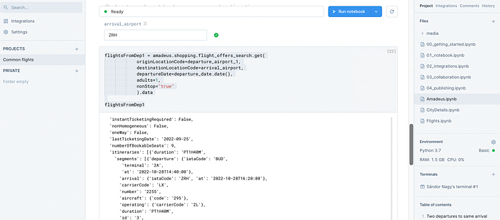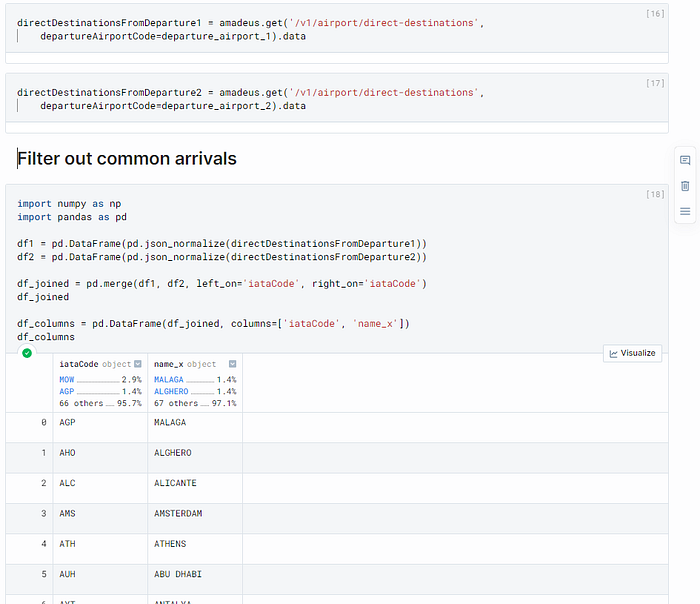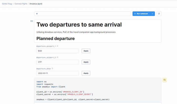 Going through every European city with an airport would be a huge task for a human, but in Deepnote you can define input fields too and hide the code so anyone can use it, even with a rudimentary UI. In order to test proof of concept, I gave it to my partner who played around with it and found it easy to navigate. If you wanted to, you could even try your solutions on stakeholders, potential customers, friends and family, before even starting to build a complicated application which can give you valuable feedback.