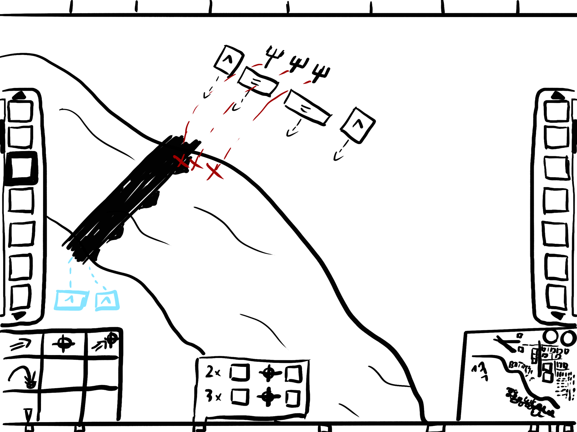 More conventional approach is perfectly working from e.g. the C&C series, twisted with the “The Sting”’s planning style gameplay: